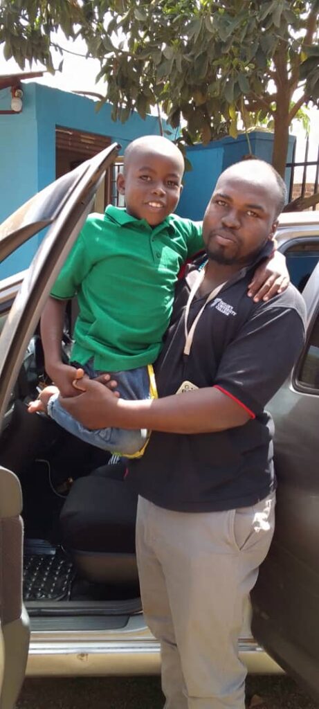 Here we are, having arrived at the hospital, I am helping Nicholas’ father get Nicholas out of the vehicle. His grandmother and teacher also accompanied us to the hospital; unfortunately, his mother was not able to go with us.